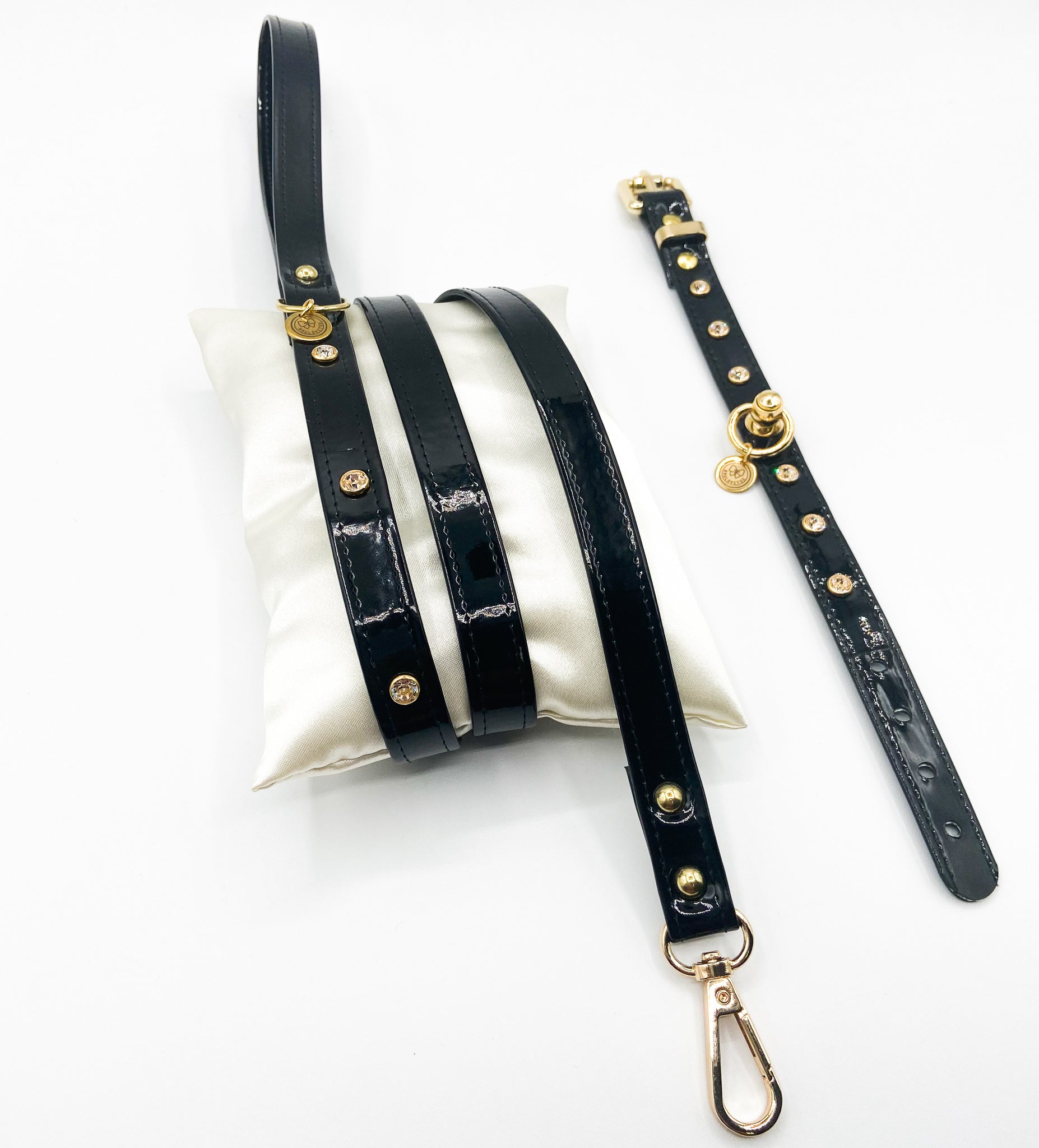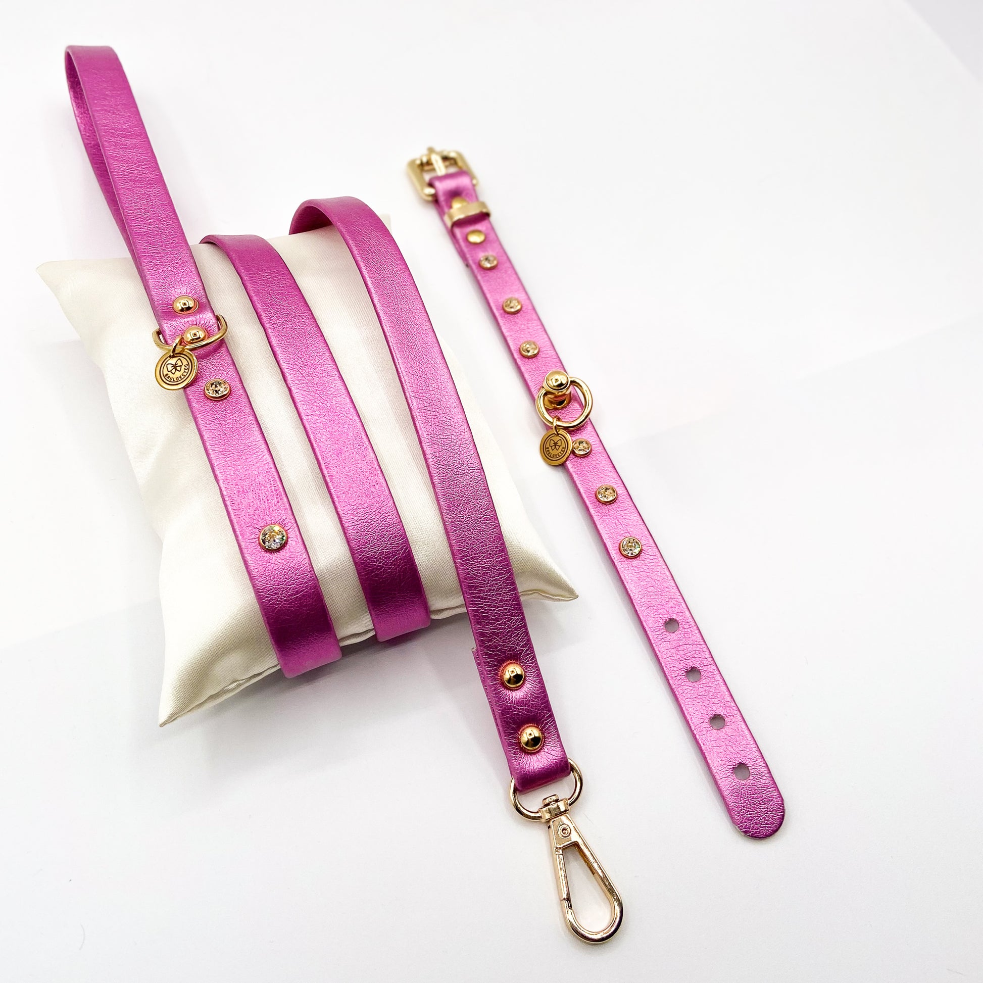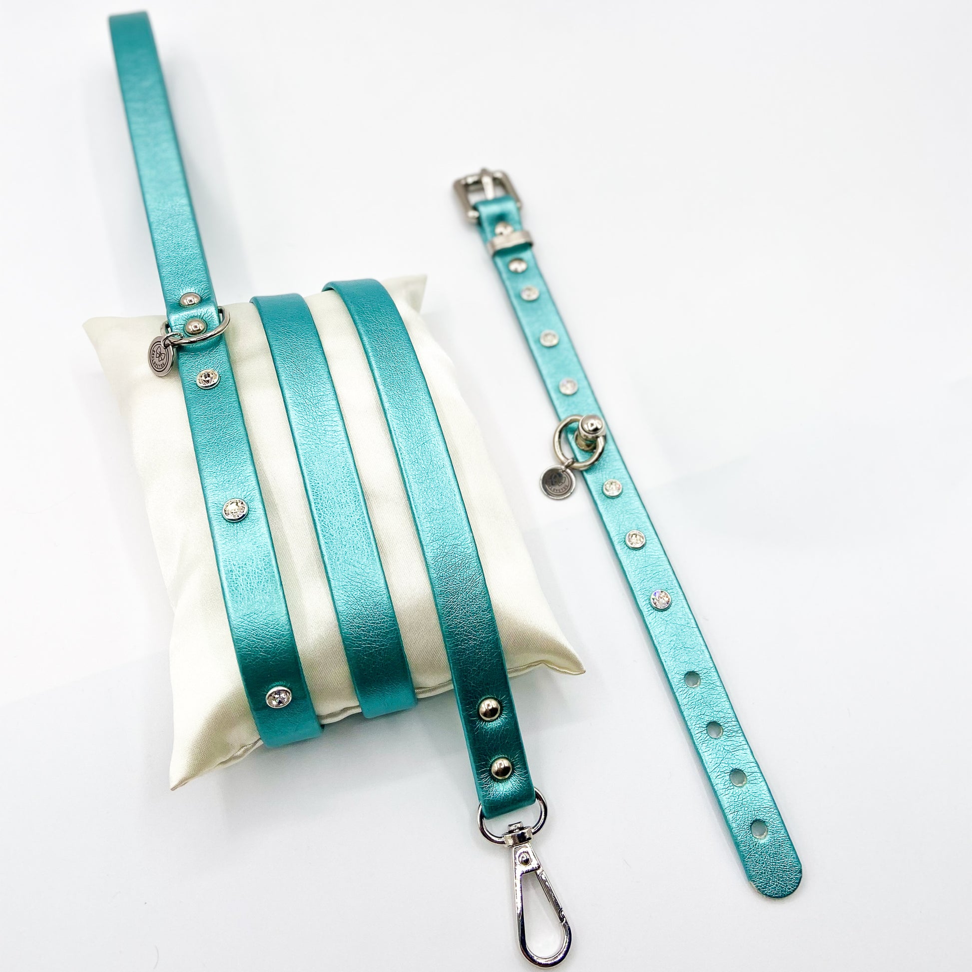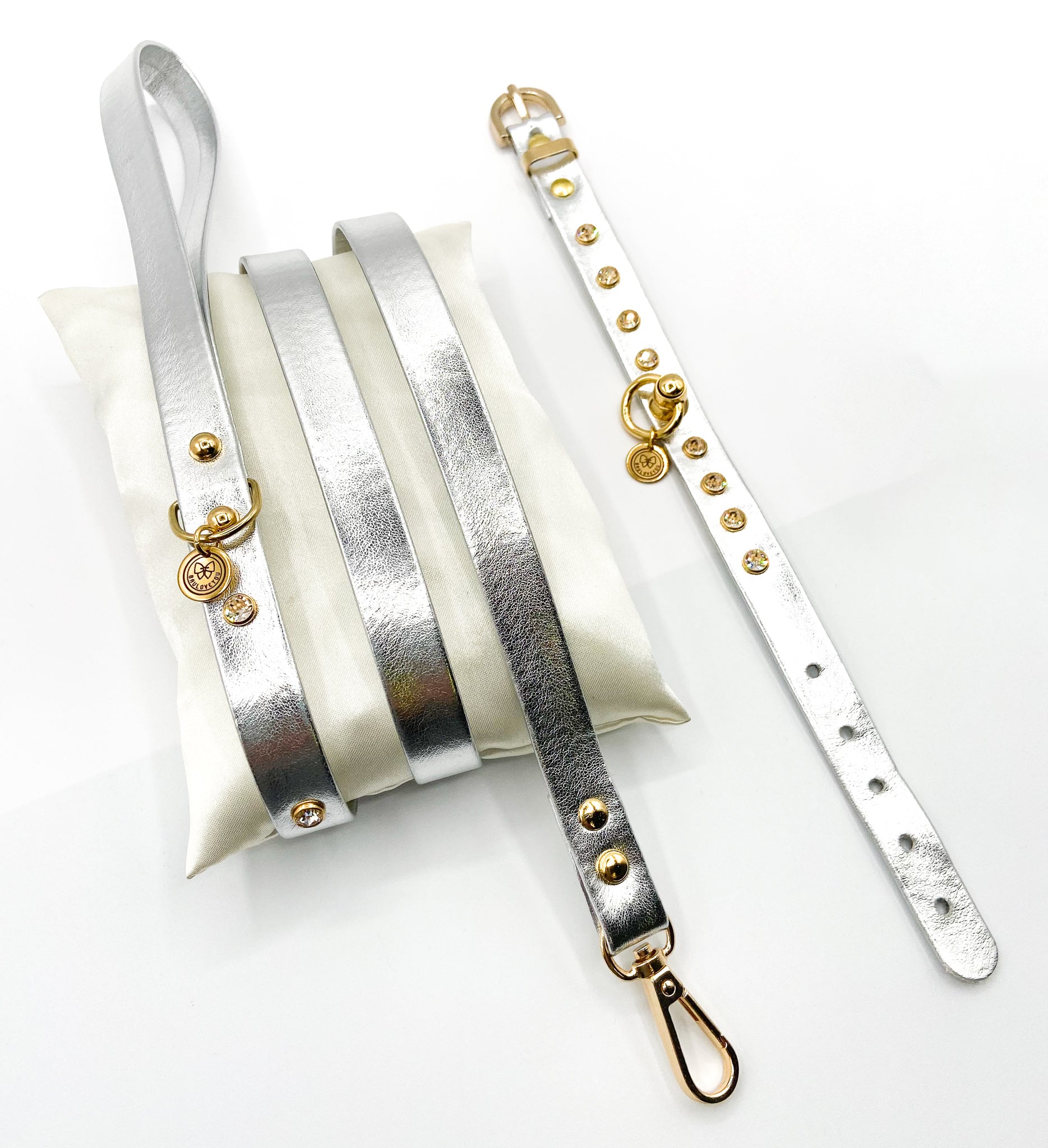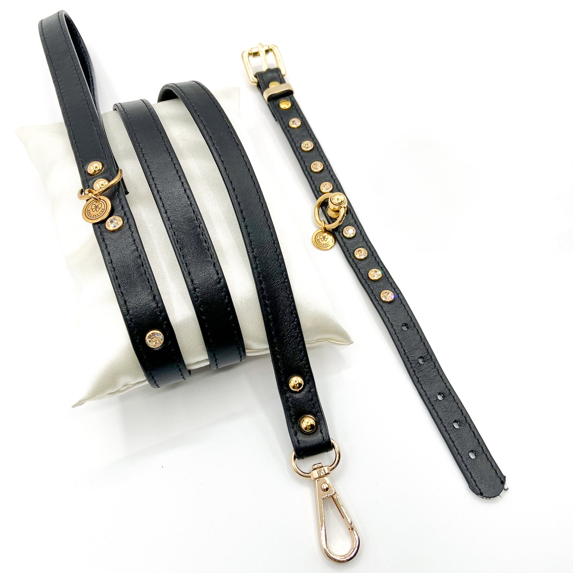 SET: Collare piu' guinzaglio in abbinamento con cristalli originali Swarovski